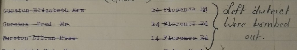 And to start off, today I have an extract that I found in the electoral roll that was kept from the 1940s to the 1950s. It’s an unusual entry, and gives a reason for removal from the electoral roll that I’m glad that we’re never going to have to log. There’s a modern block at 14 Florence Road now, alongside the Victorian terraced houses that make up the rest of the street.