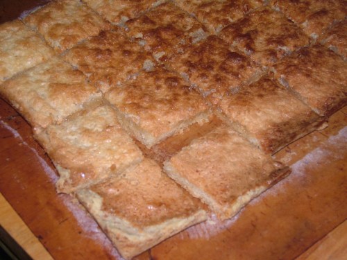 Leave to cool for 5-10 minutes and then cut into squares. These are quite sweet, but have a wonderful crisp and chewy texture.