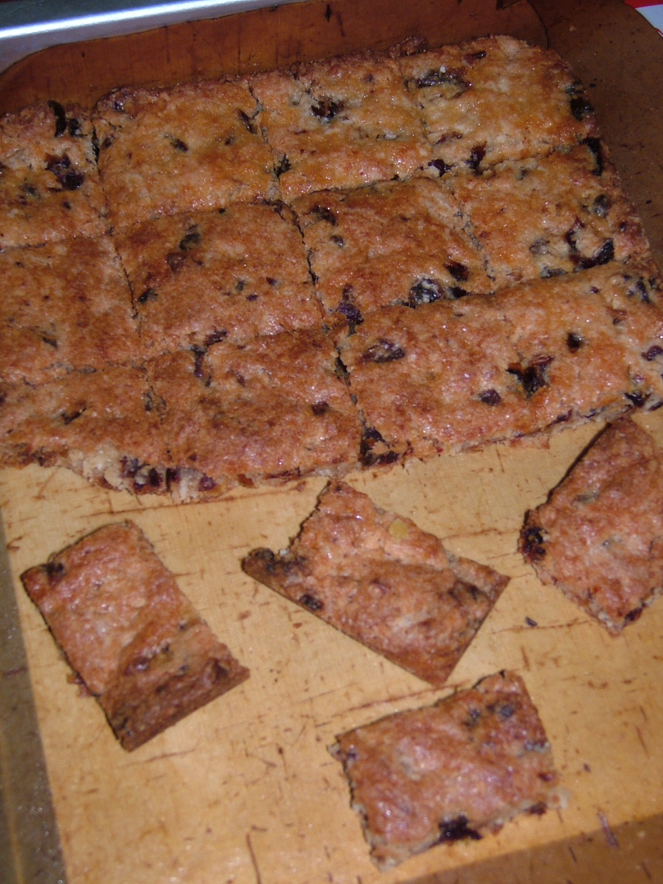 When cooled a little, cut into 24 slices. I did a little maths and reckon that each slice has about 3.5g of fat. This isn’t quite low enough to classify as ‘Low Fat’ in the US , but I think it’ll do.