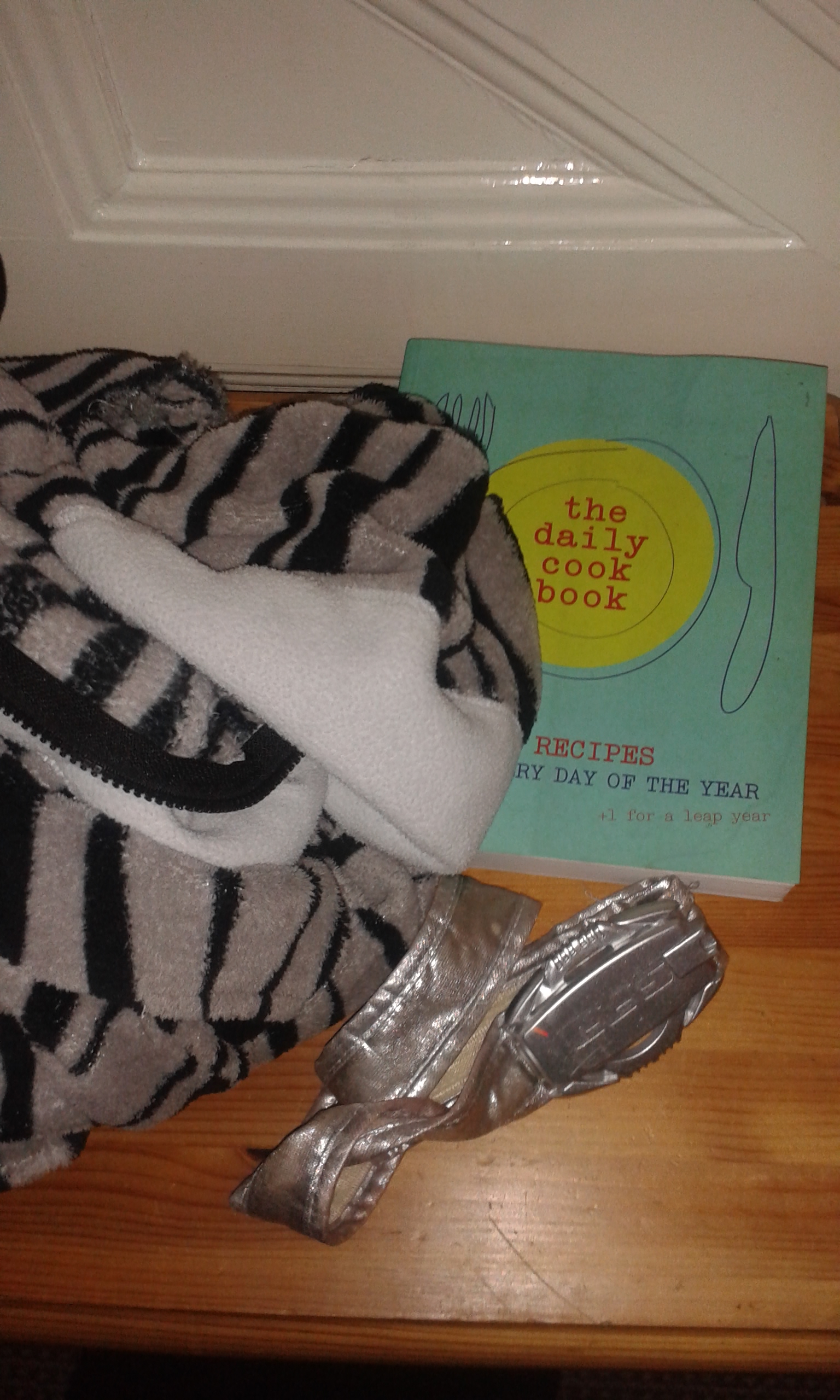 Day 3: underused cookbook, ripped onesie, space suit belt