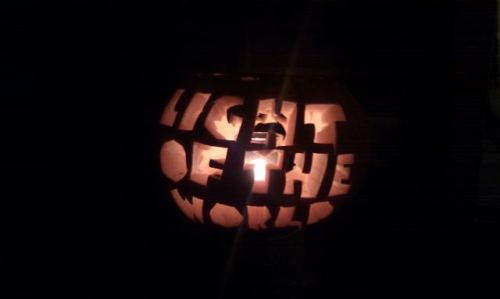 Dan, an ordinand at Oak Hill, carved this very impressive pumpkin. His daughter loved it, particularly the way the cross at the back projected onto the wall.
